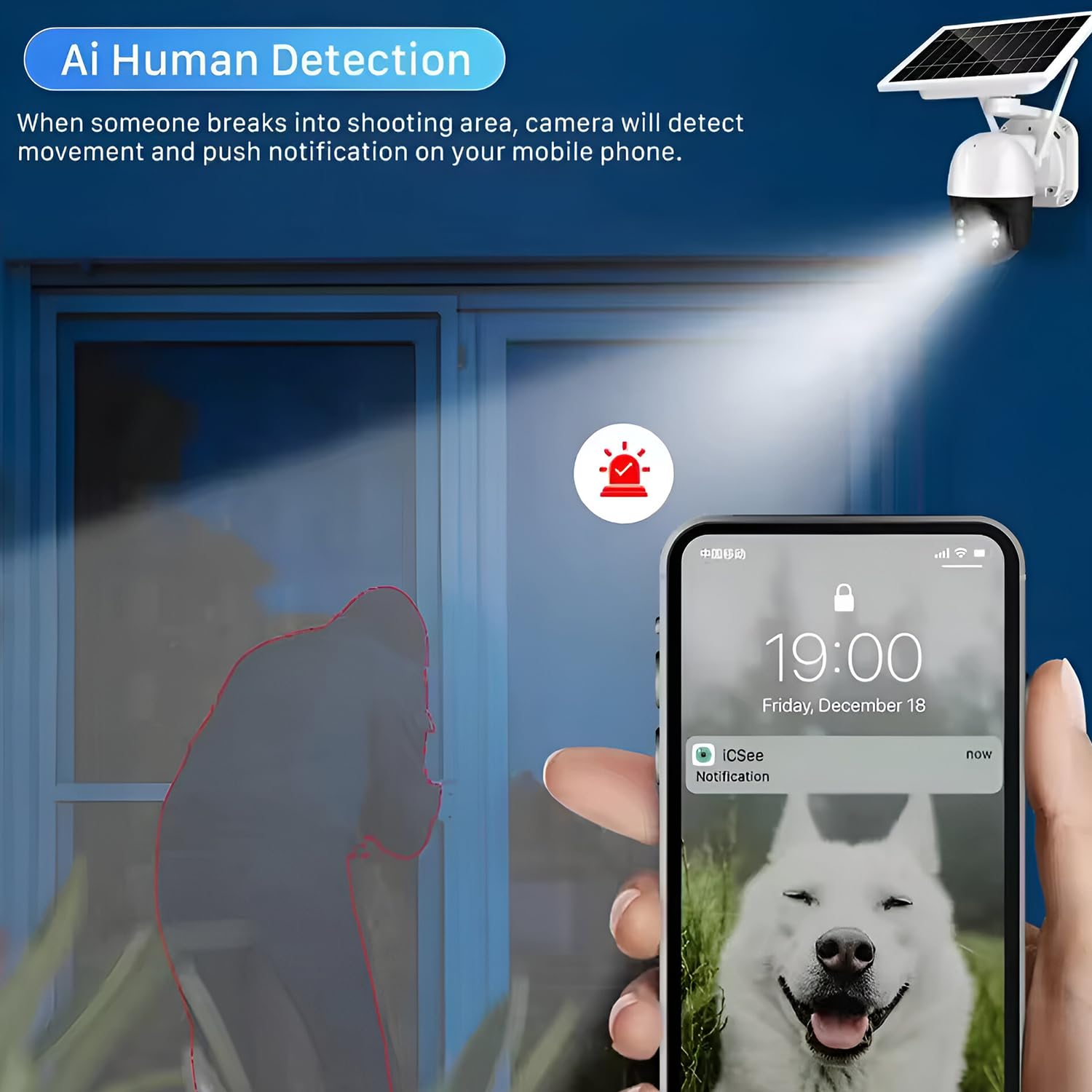 - 4G CCTV SURVEILLANCE: Integrated single-camera system with 4G connectivity for real-time monitoring and enhanced security in gardens, garages, parking lots, and farms.